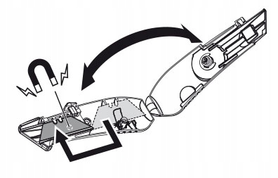 - Posiada metalową obudowę z funkcją otwierania, w której znajduje się magazynek na zapasowe ostrza